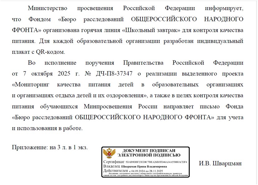 Акт проверки родителями организации питания за 4 четверть 2025 года(завтраки)